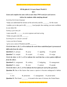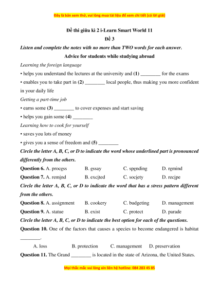 Đề thi giữa kì 2 Tiếng Anh 11 Ilearn smart world (Đề 3 kèm file nghe)
