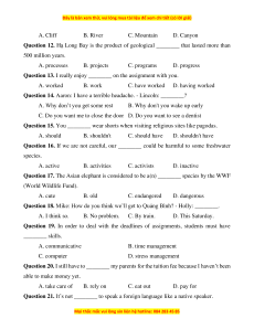Question 20. I still have to ________ my parents for the tuition fee because I haven’t been able to make money yet. A. take care of B. rely on C. eat out D. pay for