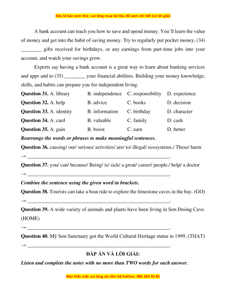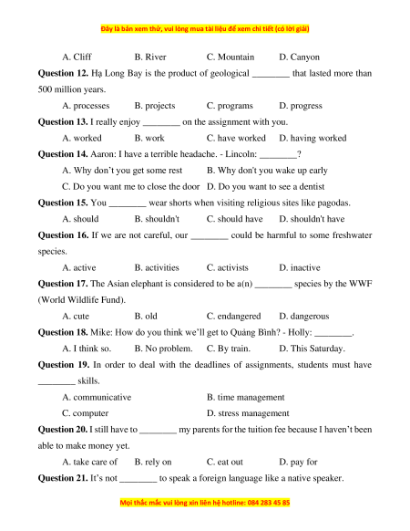 Chúng tôi đảm bảo đủ số lượng đề đã cam kết hoặc có thể nhiều hơn, tất cả có BẢN WORD, LỜI GIẢI CHI TIẾT và tải về dễ dàng.
