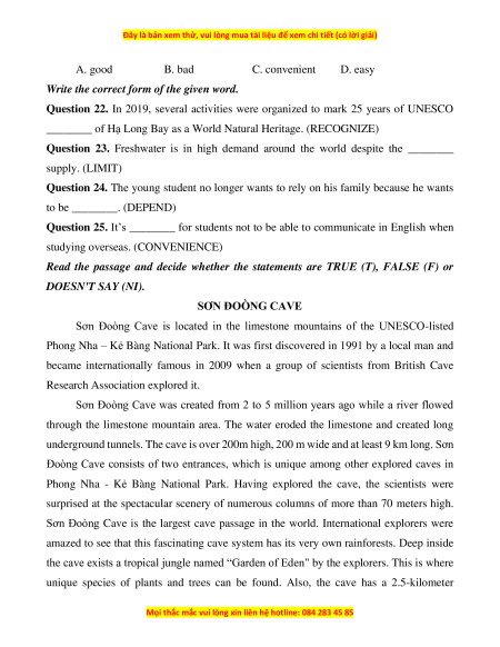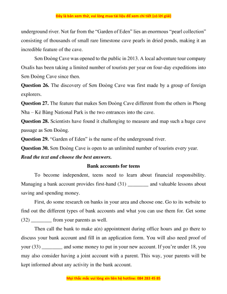 Question 30. Sơn Đoòng Cave is open to an unlimited number of tourists every year.