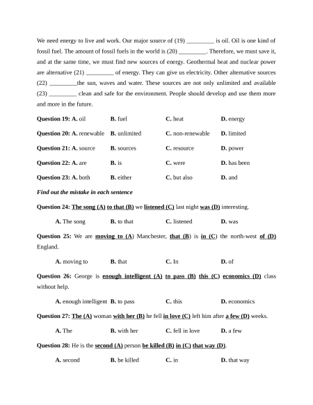 We need energy to live and work. Our major source of (19) _________ is oil. Oil is one kind of