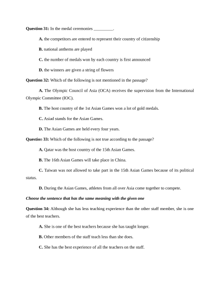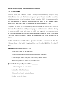 Read the passage carefully, then choose the correct answers THE ASIAN GAMES