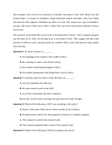 that when EL Nino appears, Zimbabwe has little or no rain. This means corn crops in Zimbabwe