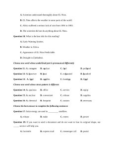 known as EL Nino. The appearance of EL Nino is known to affect the weather around the world.