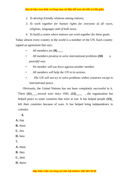 left their countries because of wars. It has helped bring independence to colonies. 6. A. that B. there C. this D. here 7. A. them B. they C. their D. theirs M i ọ th c ắ m c