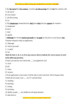 21. Hung: “How much do you earn in your new job?” - Xen: “ ______” A. That’s a bit nosey of you B. You shouldn’t ask that C. I’m not your slave