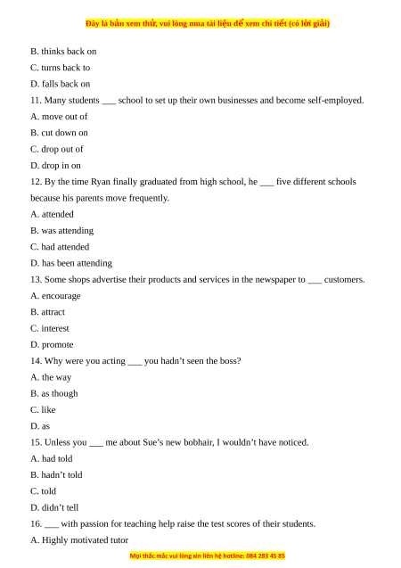 Đây là bản xem th , vu ử i lòng mua tài li u ệ đ xe ể m chi ti t ế (có l i ờ gi i ả ) B. thinks back on C. turns back to D. falls back on