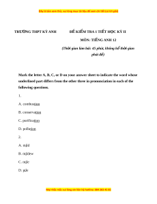 TRƯ N Ờ G THPT KỲ ANH ĐỀ KIỂM TRA 1 TI T Ế H C Ọ KỲ II MÔN: TI N Ế G ANH 12 (Th i
