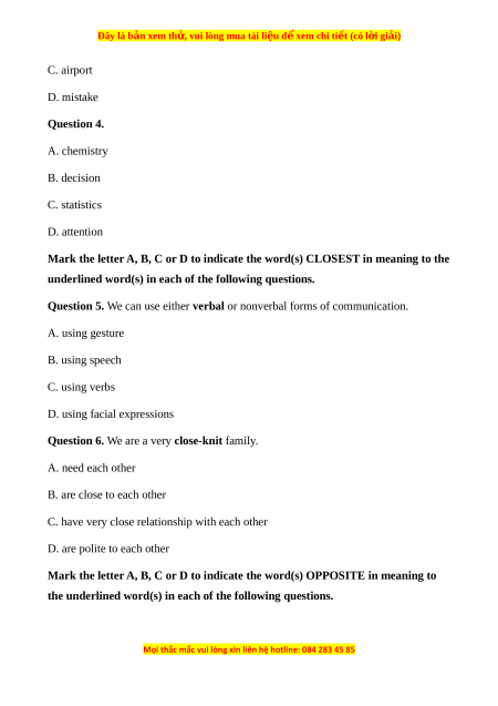 Đây là bản xem th , vu ử i lòng mua tài li u ệ đ xe ể m chi ti t ế (có l i ờ gi i ả ) C. airport D. mistake Question 4. A. chemistry B. decision C. statistics D. attention