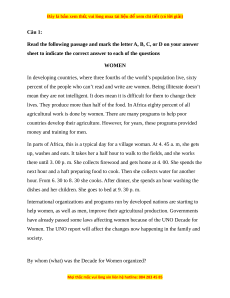 A typical African woman spends _____ collecting firewood every day. A. 3 hour B. 2 hour C. 1 hour D. 4 hour Câu 4: