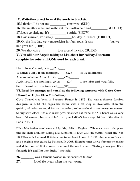 IV. Write the correct form of the words in brackets.