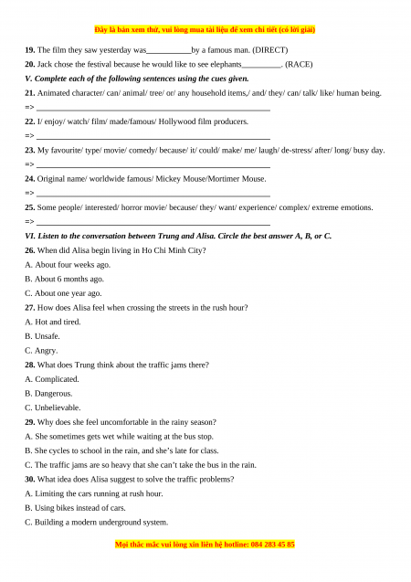 - VI. Listen to the conversation between Trung and Alisa. Circle the best answer A, B, or C.