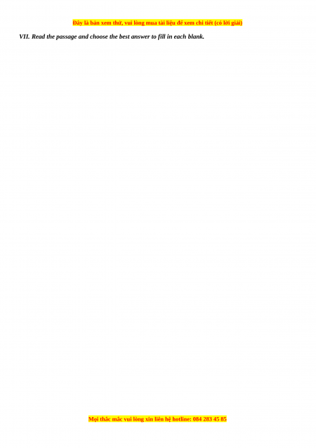 - VII. Read the passage and choose the best answer to fill in each blank.