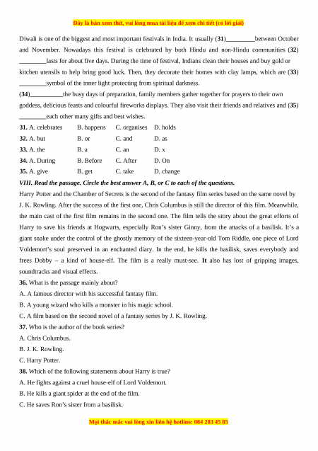 - VIII. Read the passage. Circle the best answer A, B, or C to each of the questions.