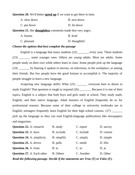 Question 22. A. research B. study C. report D. survey Question 23. A. have B. exclude C. include D. consist