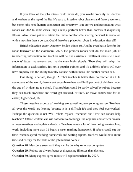 Question 30. Many experts agree robots will replace teachers by 2027.