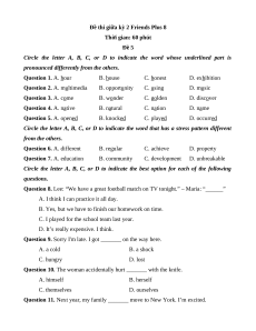 Đề thi giữa kỳ 2 Friends Plus 8 Thời gian: 60 phút Đề 5