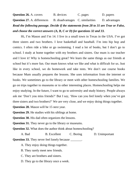 Question 29. He studies with his siblings at home.