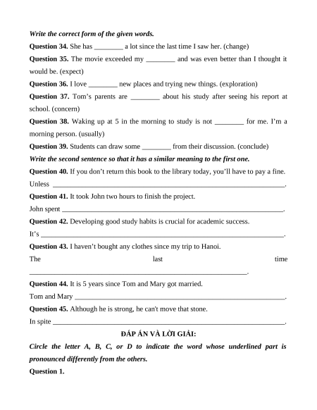 pronounced differently from the others. Question 1. A. hour B. house C. honest D. exhibition