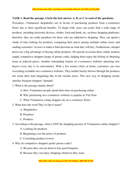 3. According to the passage, what is NOT the shopping practice of Vietnamese online shoppers? A. Looking for products