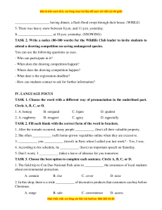 TASK 1. Choose the word with a different way of pronunciation in the underlined part. Circle A, B, C, or D. 1. A. honest B. outstand C. listen D. student 2. A. raspberry B. resspect C. spicy D. especially