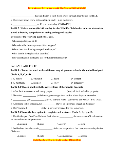 TASK 2. Write a notice (80-100 words) for the Wildlife Club leader to invite students to