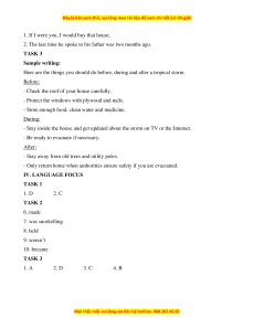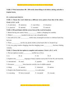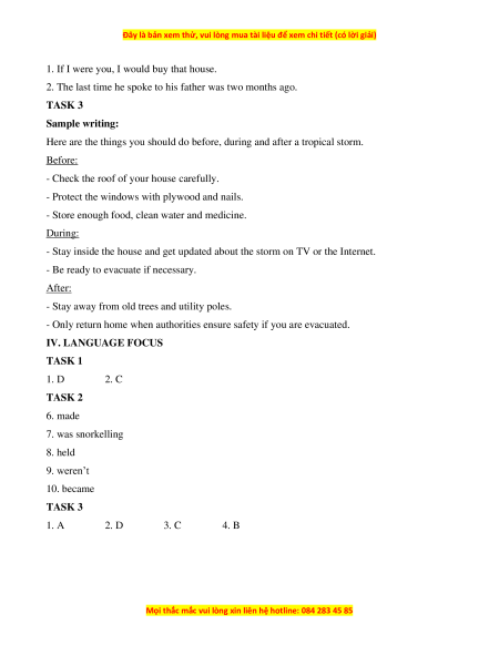 TASK 3. Write instructions (80 - 100 words) about things to do before, during, and after a tropical storm. IV. LANGUAGE FOCUS