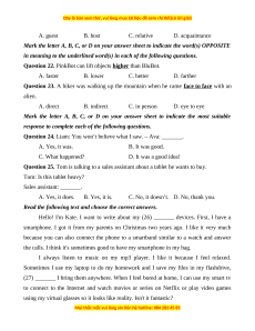 Question 23. A hiker was walking up the mountain when he came face to face with an alien. A. direct B. indirect C. in person D. eye to eye