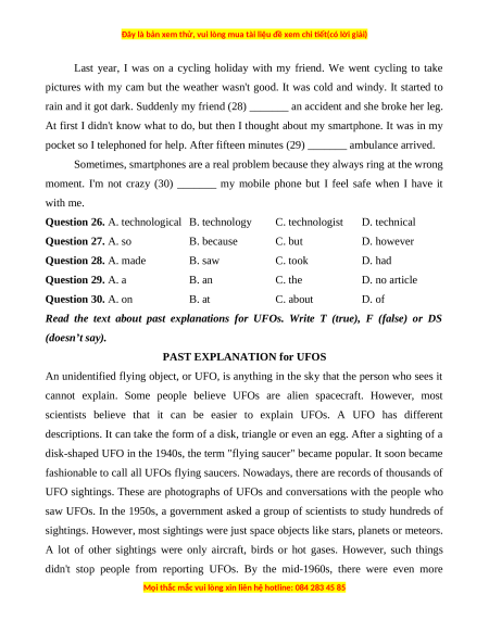Question 26. A. technological B. technology C. technologist D. technical Question 27. A. so B. because C. but D. however Question 28. A. made B. saw C. took D. had Question 29. A. a B. an C. the D. no article Question 30. A. on B. at C. about D. of