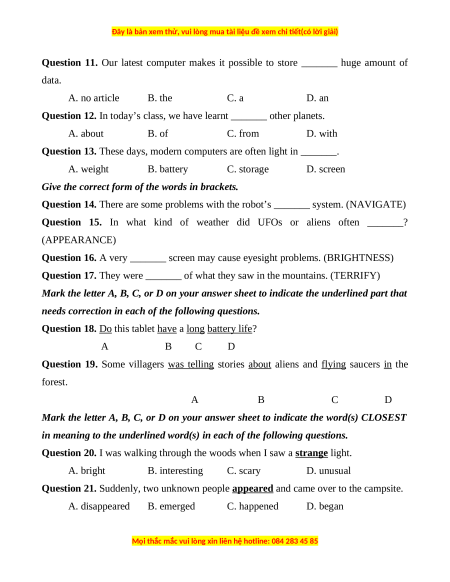 Chúng tôi đảm bảo đủ số lượng đề đã cam kết hoặc có thể nhiều hơn, tất cả có BẢN WORD, LỜI GIẢI CHI TIẾT và tải về dễ dàng.
