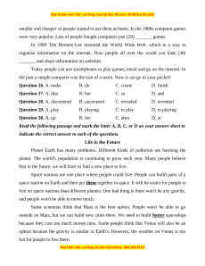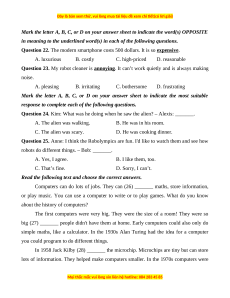 the past a simple computer was the size of a room. Now it can go in your pocket! Question 26. A. make B. do C. create D. finish Question 27. A. that B. but C. so D. and