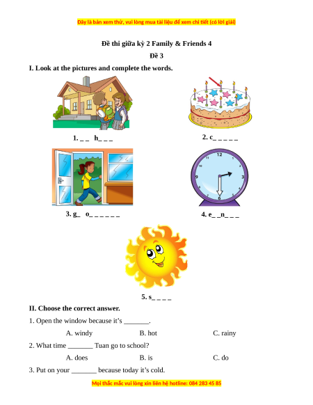 Đề thi giữa kỳ 2 Family & Friends 4 Đề 3