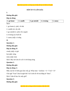 ĐÁP ÁN VÀ LỜI GIẢI: I. Hướng dẫn giải: Đáp án đúng: 1. go home 2. candle 3. go outside 4. evening 5. sunny Dịch: