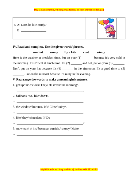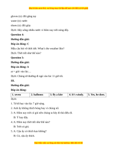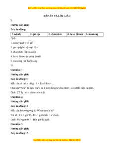 ĐÁP ÁN VÀ LỜI GIẢI: I. Hướng dẫn giải: Đáp án đúng: 1. windy 2. get up 3. chocolate