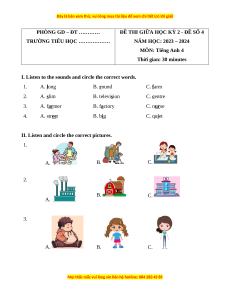 NĂM HỌC: 2023 – 2024 MÔN: Tiếng Anh 4 Thời gian: 30 minutes