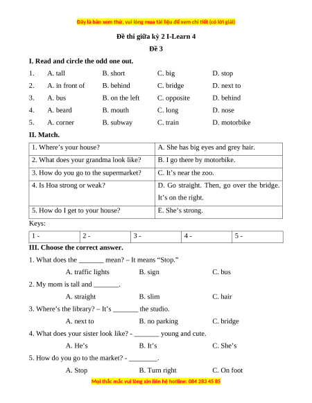 Đề thi giữa kỳ 2 I-Learn 4 Đề 3
