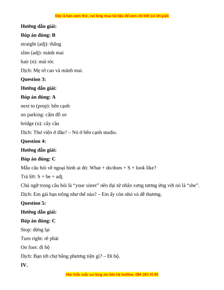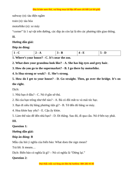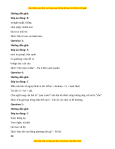 5. Làm thế nào để đến nhà bạn? - D. Đi thẳng. Sau đó, đi qua cầu. Nó ở bên tay phải. III. Question 1: Hướng dẫn giải: Đáp án đúng: B