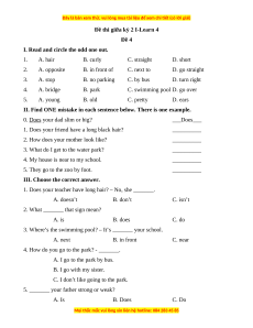 1. Does your teacher have long hair? – No, she _______. A. doesn’t B. don’t C. isn’t