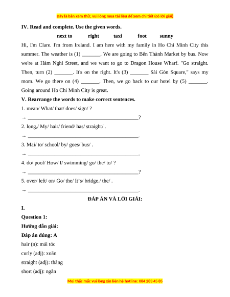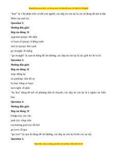 ĐÁP ÁN VÀ LỜI GIẢI: I. Question 1: Hướng dẫn giải: Đáp án đúng: A hair (n): mái tóc curly (adj): xoăn straight (adj): thẳng short (adj): ngắn