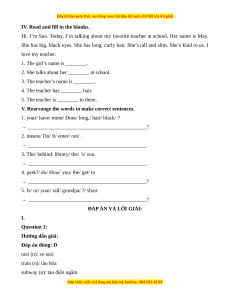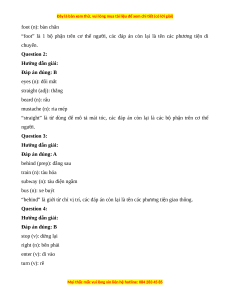 ĐÁP ÁN VÀ LỜI GIẢI: I. Question 1: Hướng dẫn giải: Đáp án đúng: D taxi (n): xe taxi train (n): tàu hỏa
