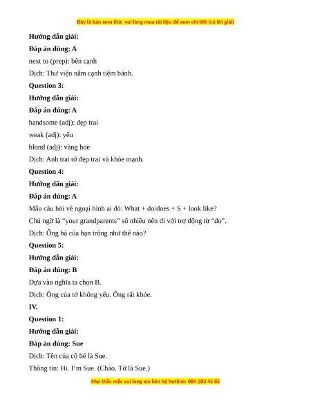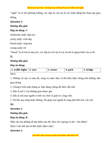 “right” là từ chỉ phương hướng, các đáp án còn lại là các hành động khi tham gia giao thông. Question 5: Hướng dẫn giải: Đáp án đúng: C handsome (adj): đẹp trai pretty (adj): xinh đẹp blond (adj): vàng hoe young (adj): trẻ
