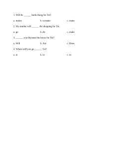 4. Will Mai do the shopping for Tet? a. Yes, she will. b. No, she won’t.