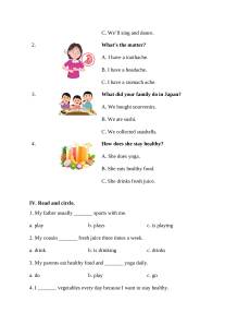 4. I _______ vegetables every day because I want to stay healthy. a. am eating b. ate c. eat