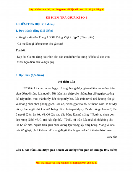 2. Đọc hiểu (6,5 điểm) Nữ thần Lúa