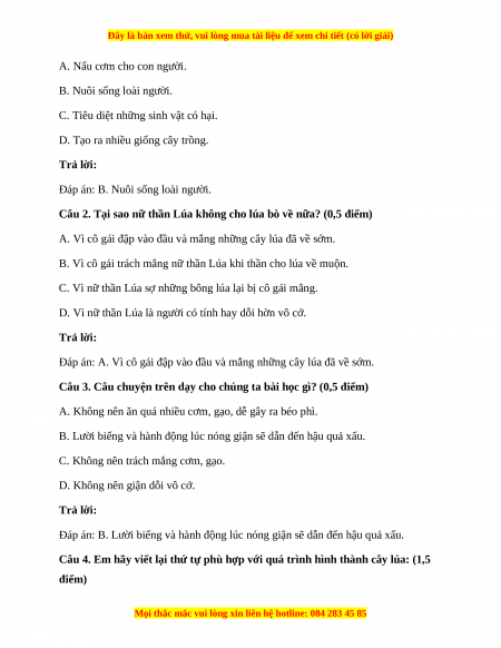 Câu 1. Nữ thần Lúa được giao nhiệm vụ xuống trần gian để làm gì? (0,5 điểm)