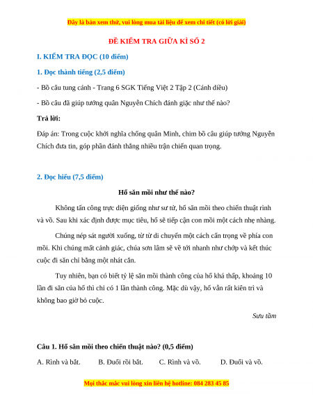 - Tailieugiaovien.com.vn giới thiệu bộ đề thi giữa kì 2 Tiếng Việt lớp 2 Cánh diều mới nhất nhằm giúp Giáo viên có thêm tài liệu tham khảo ra đề thi Tiếng Việt lớp 2.