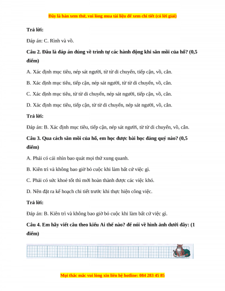 Câu 3. Qua cách săn mồi của hổ, em học được bài học đáng quý nào? (0,5 điểm)
