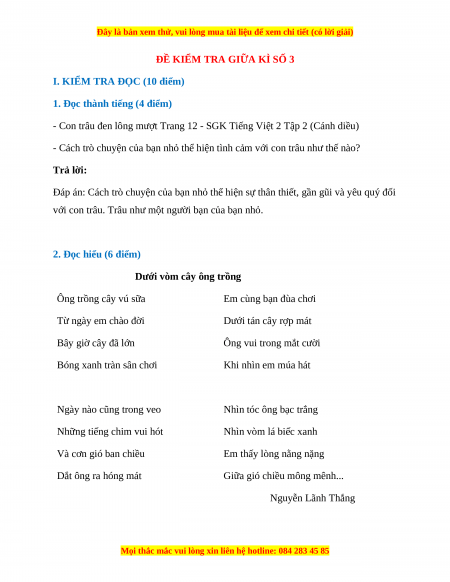 Đề thi giữa kì 2 Tiếng Việt lớp 2 Cánh diều (Đề 3)