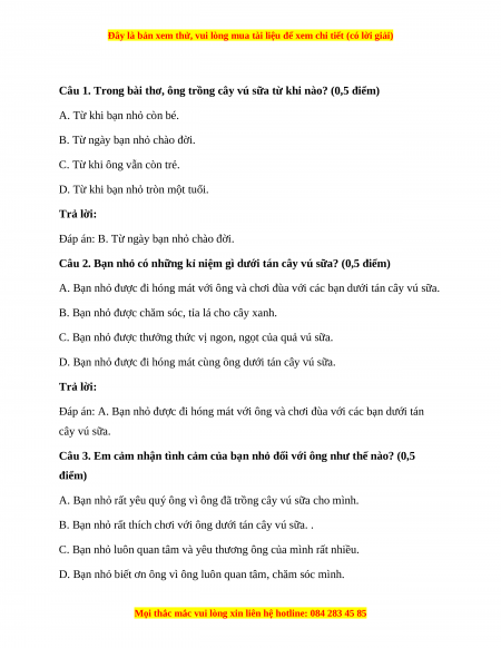 Câu 1. Trong bài thơ, ông trồng cây vú sữa từ khi nào? (0,5 điểm)