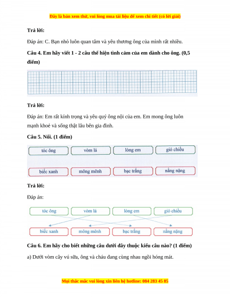 Câu 4. Em hãy viết 1 - 2 câu thể hiện tình cảm của em dành cho ông. (0,5 điểm) Trả lời: